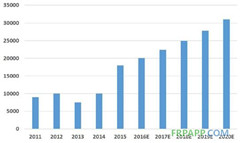 2015年年底,全球风电装机容量达到432.42GW,累计年增长率为17%。2015年碳纤维在风能上的应用为17000吨,预计2020年达到30000,年均复合增长率为8.1%。中国累计装机容